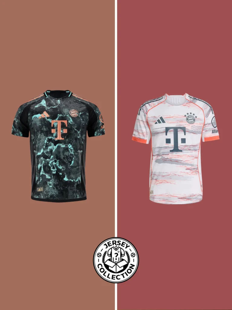 2025/26: Nowy strój wyjazdowy wyróżnia się elegancką kolorystyką: dominującą bielą z szarymi i jaskrawo koralowymi akcentami. Wzór na koszulce nawiązuje do charakterystycznej fasady Allianz Areny, łącząc nowoczesność z tradycją i symbolizując optymizm oraz przyszłość klubu. Projekt powstał z okazji 20-lecia stadionu i zadebiutował podczas ostatniego domowego meczu Thomasa Müllera.