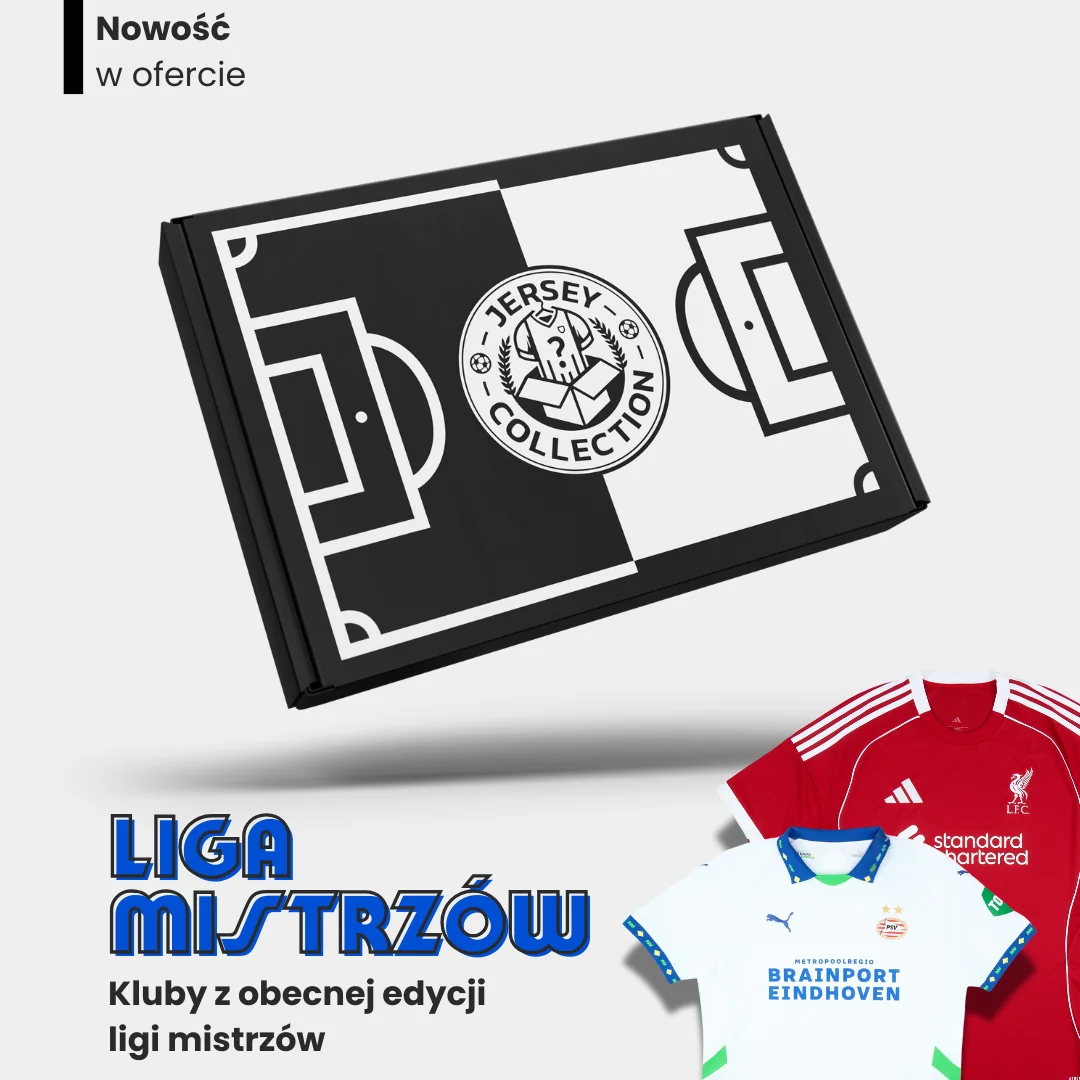 Nie czekaj – zamów swój mystery box z koszulką piłkarską klubu Ligi Mistrzów i spraw sobie niespodziankę. Każde pudełko to wyjątkowa piłkarska przygoda, a zdjęcia prezentowane na stronie są jedynie przykładami koszulek, które można trafić.